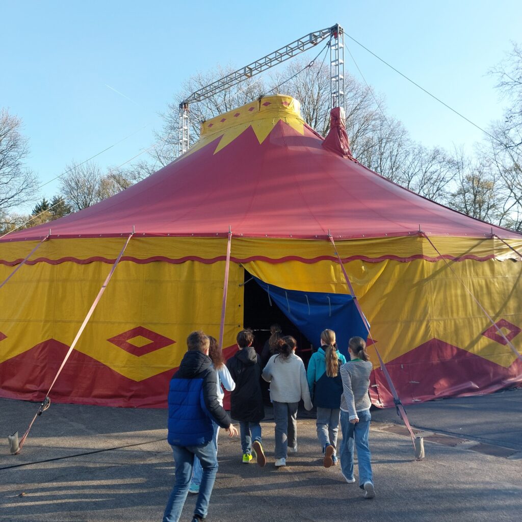 Unsere Schule hat sich in einen Zirkus verwandelt. Der Kölner Spielezirkus ist Gast und alle Kinder haben sich in Artist*innen verwandelt.