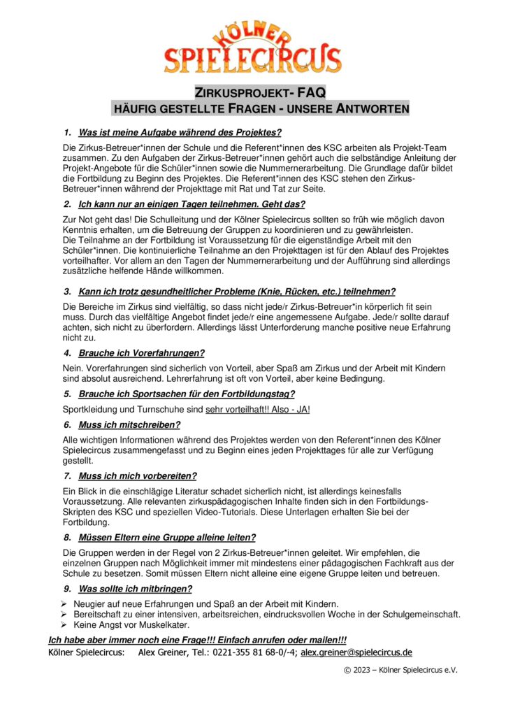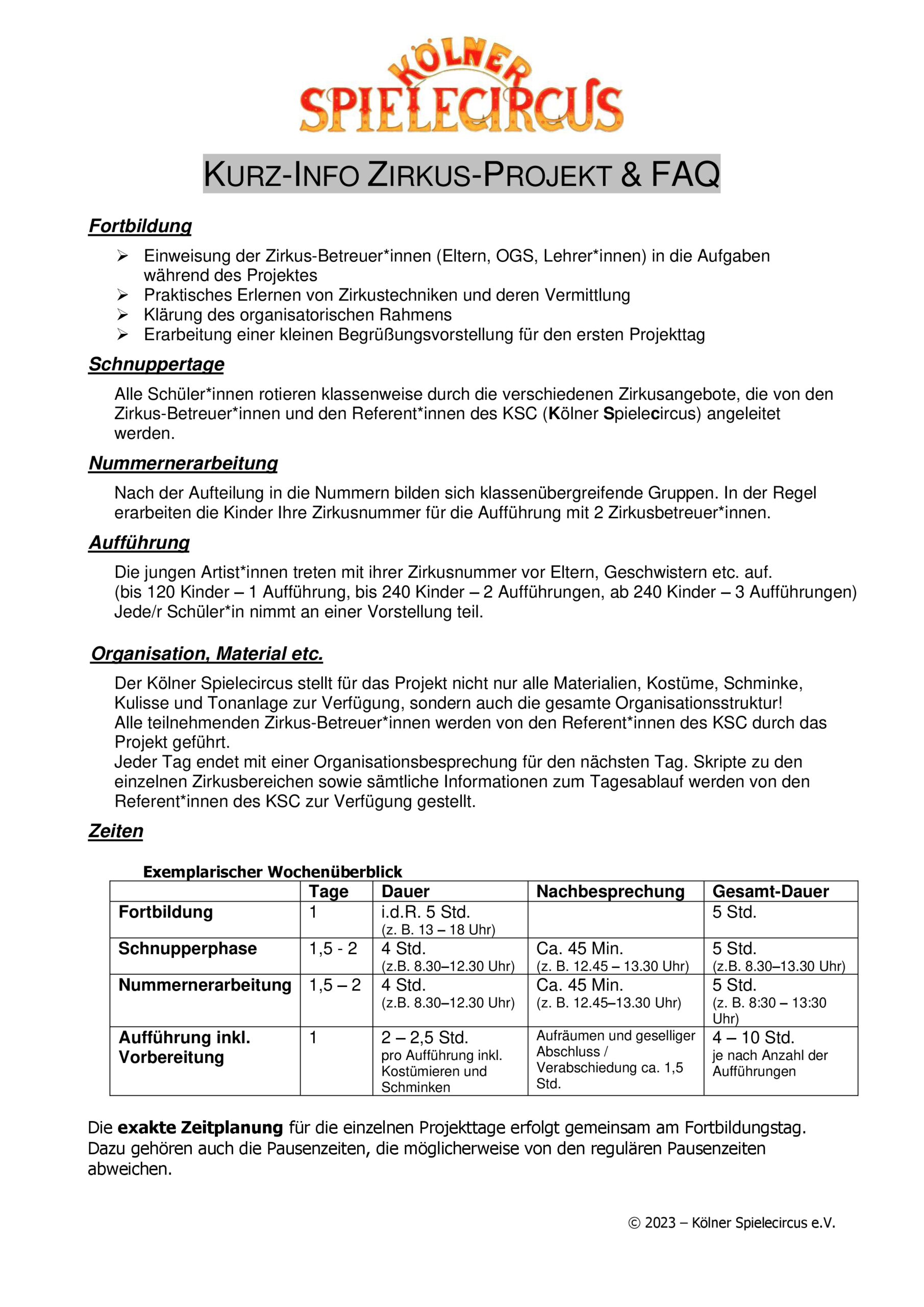 KURZ-INFO ZIRKUS-PROJEKT & FAQ