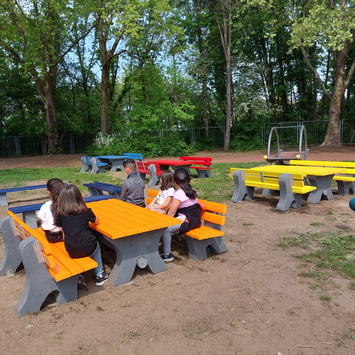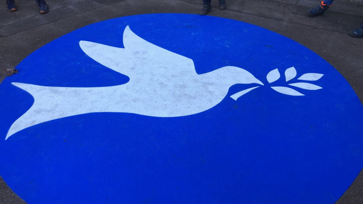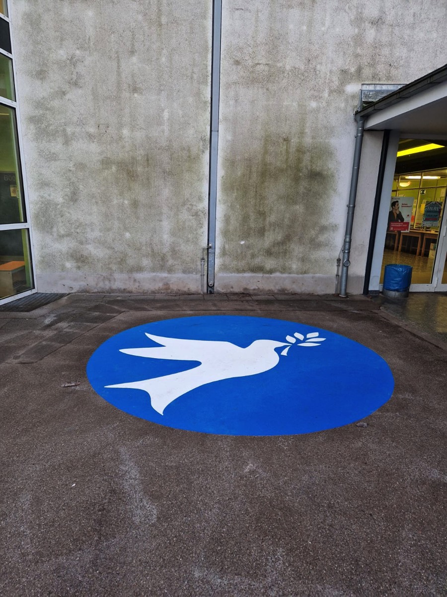 Die Friedenstaube auf dem Schulhof soll ein Ort für die Streitschlichtung und Streitklärung sein und darin erinnern, dass Vertragen und Frieden immer wieder möglich sind.